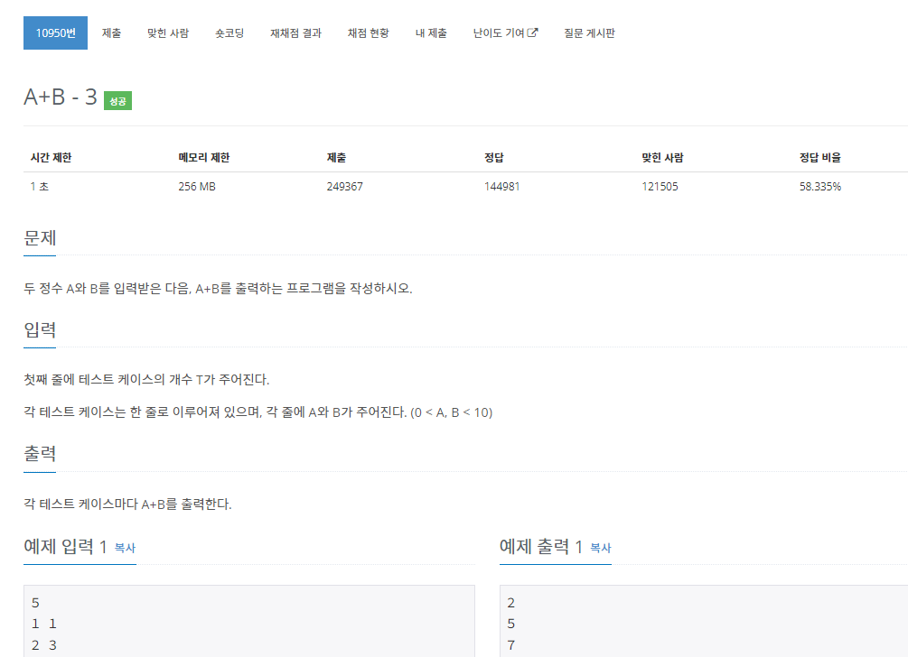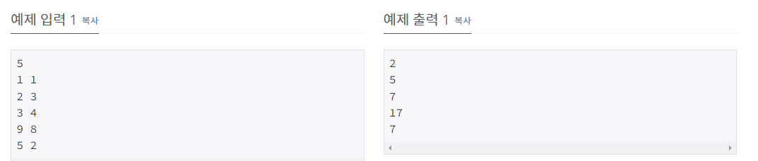 두 정수 A와 B를 입력받은 다음, A+B를 출력하는 프로그램을 작성하시오.