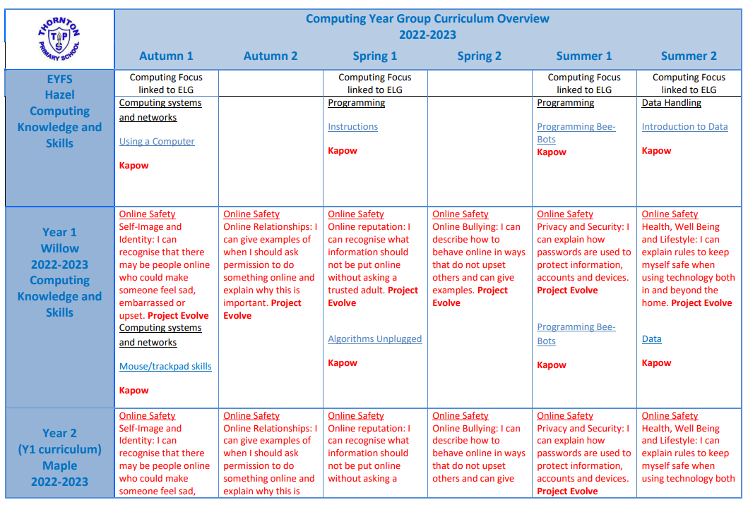 영국 프라이머리스쿨(초등학교)에서는 다음과 같은 커리큘럼으로 컴퓨터를 가르치고 있어요.