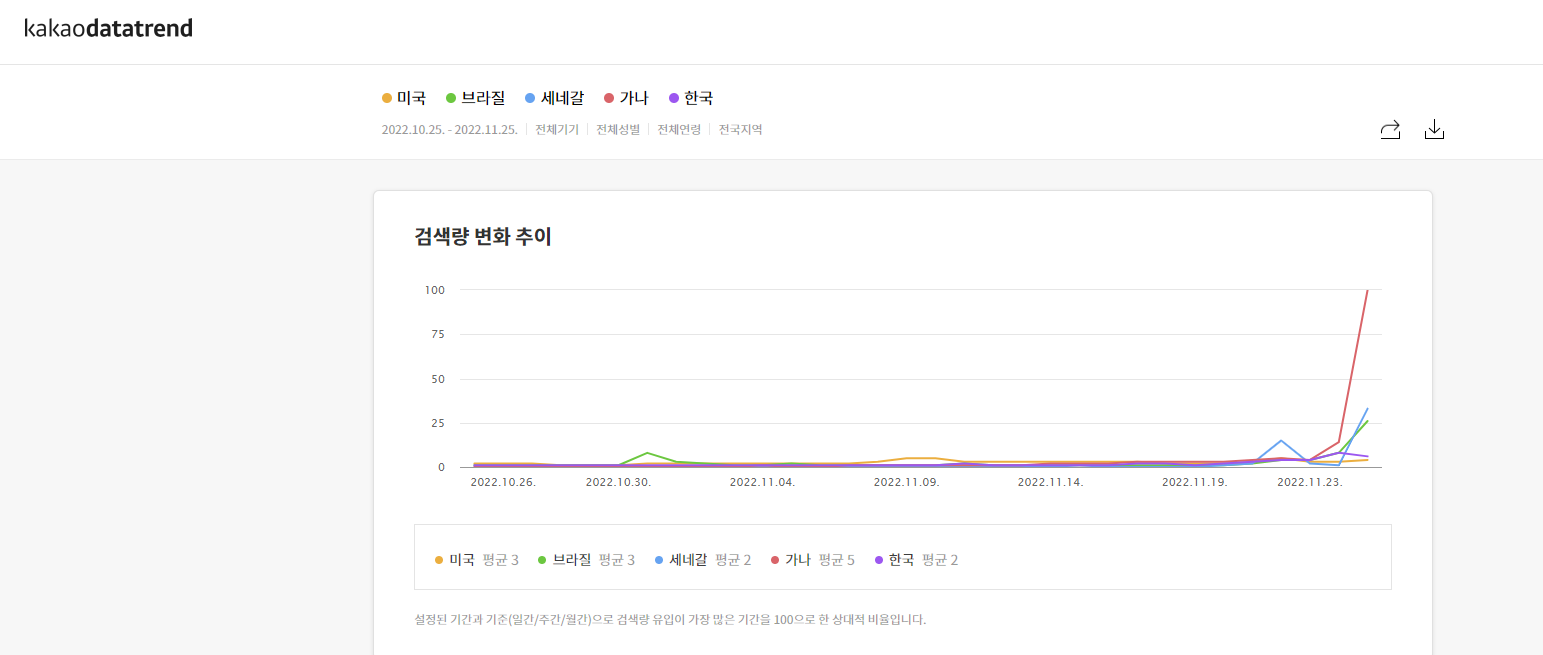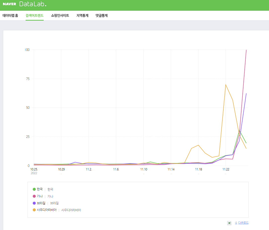 Google trend로 실시간 검색어 순위 파악! 사우디아라비아 vs 미국 vs 잉글랜드 순위는?