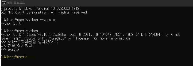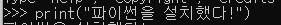 print("파이썬을 설치했다!") 를 출력해보겠습니다.