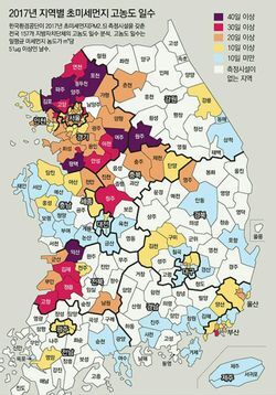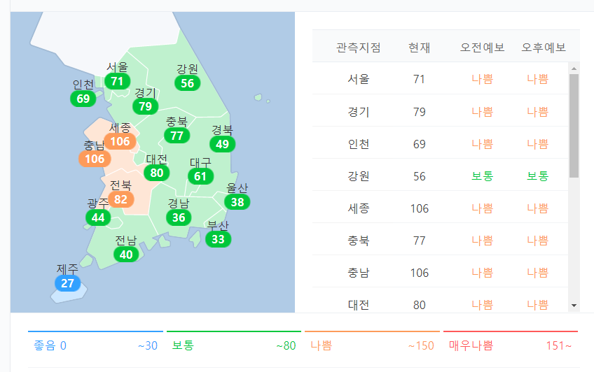 현재는 초미세먼지가 100이상으로 문제가 되고 있습니다