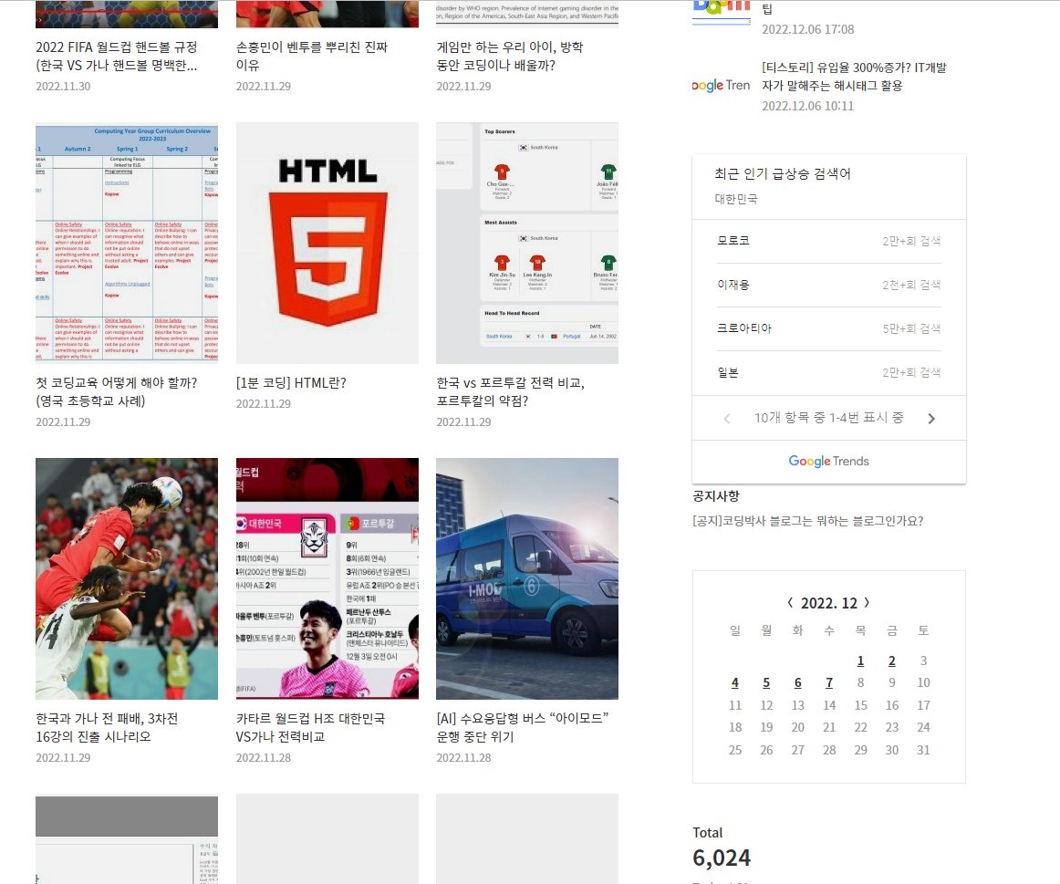 오늘은 Google Trend 에서 내 블로그에 실시간 Hot 검색어 부분을 삽입하려고 합니다.