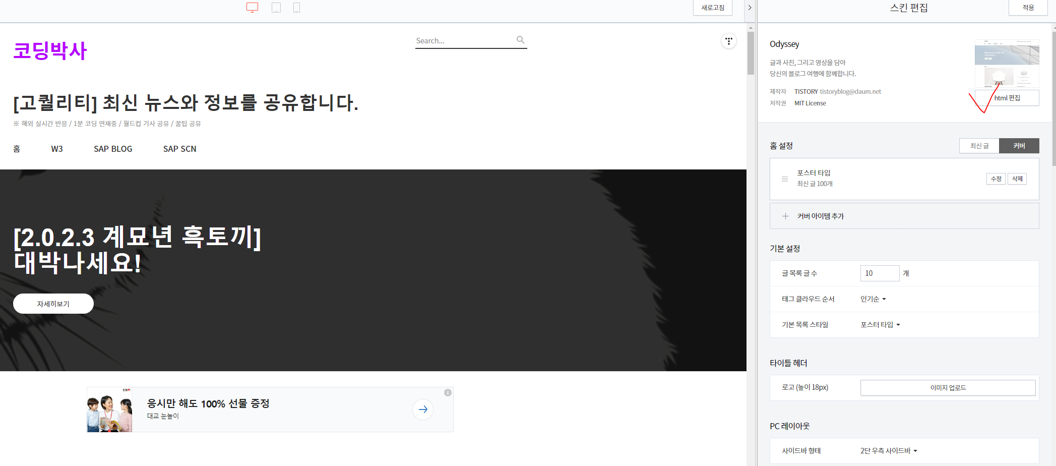 스킨편집을 클릭!