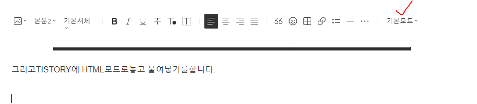 그리고TISTORY에 HTML모드로놓고 붙여넣기를합니다.