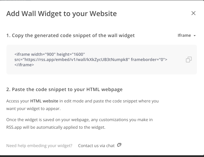 여기에 ADD TO WEBSITE를 선택하면, IFRAM 으로 복사를 합니다.
