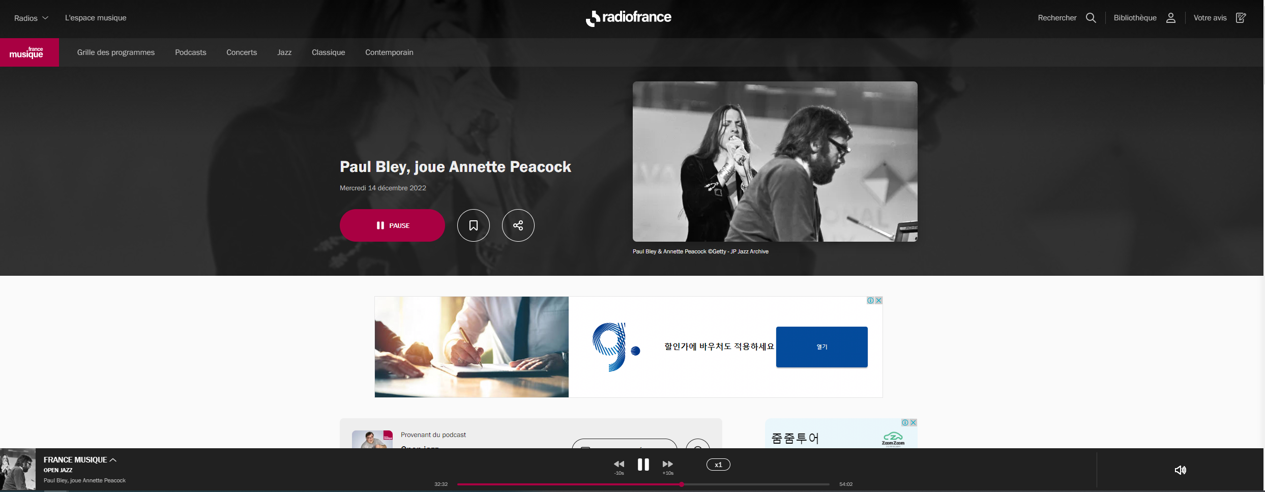그래서 프랑스에서 제공하는 라디오가 있는데 거기서 재즈를 무료로 들을수 있게 되어있어요