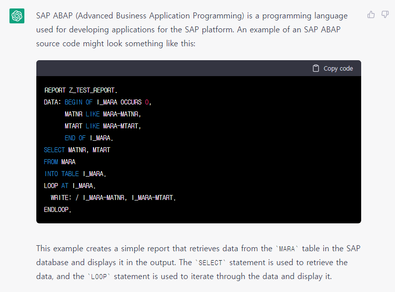 [SAP] SAP ABAP 예제를 물어보면 답변해주는 chatGPT